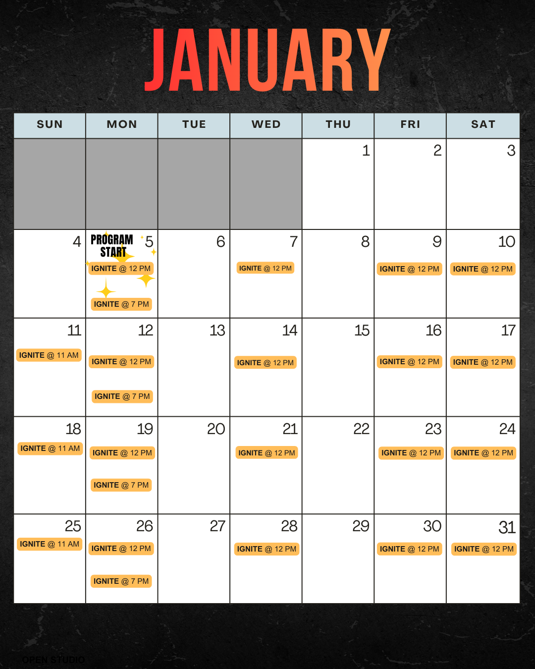 IGNITE CLASS SCHEDULE
